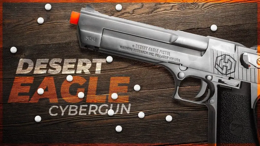 Até 2021, a versão da Desert Eagle de Airsoft era problemática, devido a falhas na versão com CO2. Porém, a parceria entre a CyberGun, que detém as licenças das marcações da arma real, e a Armorer Works, especialista em pistolas de gás, resultou em um modelo mais confiável. Essa colaboração trouxe não só qualidade, mas também a autenticidade das marcações que remetem à arma de fogo real, o que a torna ainda mais interessante para os entusiastas.